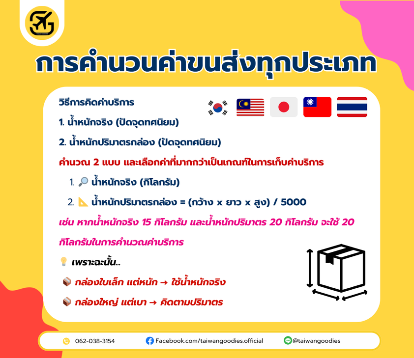 Taiwan Goodies ให้บริการจัดส่งสินค้าจากประเทศไทยไปเกาหลีทางแอร์ ดูแลตั้งแต่รับของในไทย แนะนำการแพ็ก จนถึงขั้นตอนปลายทางอย่างเป็นระบบ